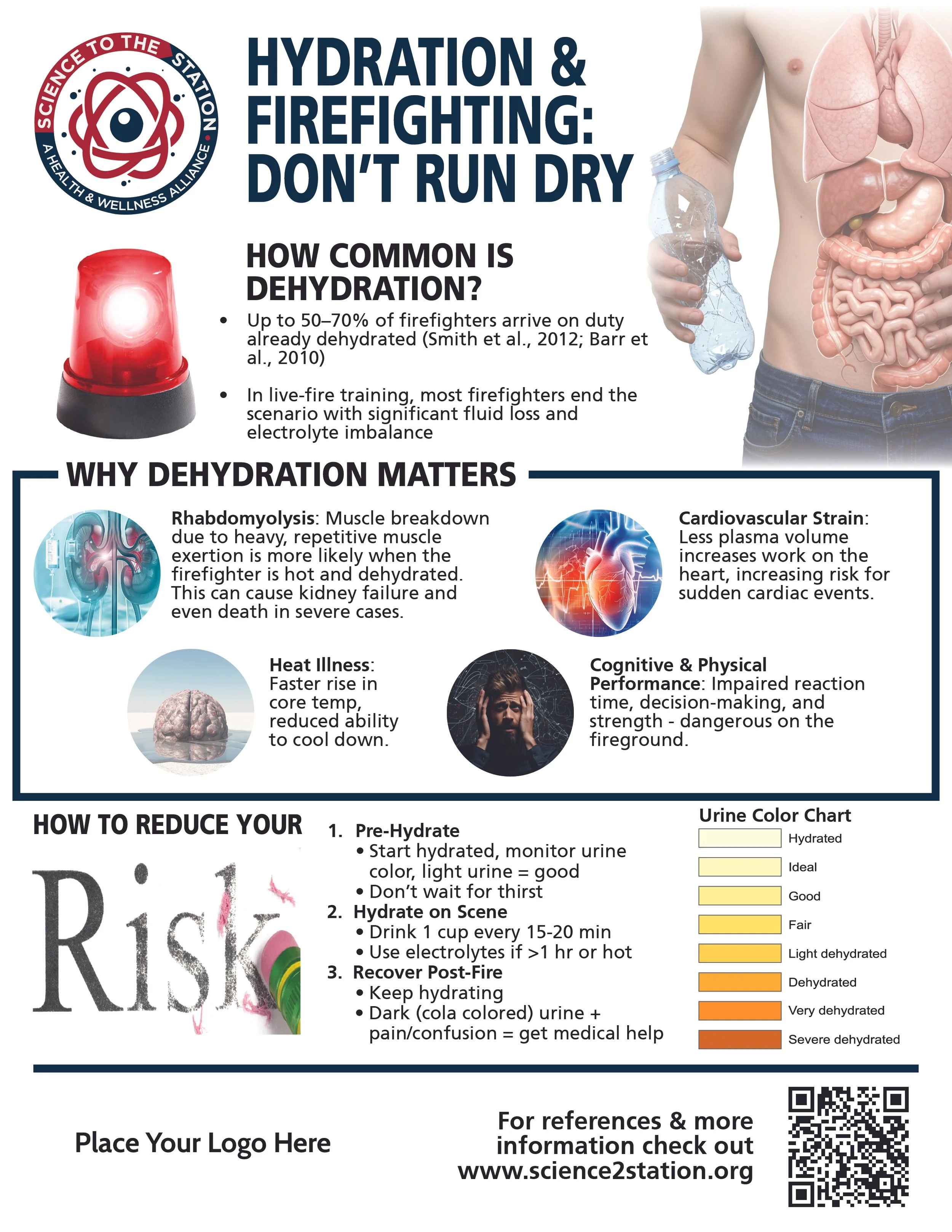 Smith DL, et al. (2012). Firefighter hydration: Physiological responses and hydration behaviors during training. J Strength Cond Res, 26(9): 2443–2451.
